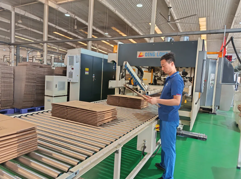 此次投产的智能纸箱印刷成型联动生产线,选用上海鼎龙 “赛利达” 设备,是雷火电竞经过充分市场调研后作出的重要决策,成为华北地区首台套智能纸箱印刷成型联动生产线。该生产线集成多项行业前沿技术,包括全伺服控制、AI 视觉检测、物联网数据追溯、全自动模切成型等,实现了从送纸、压线、模切、成型、打包到码垛的全流程自动化,各环节通过高精度数字接口协同运行。